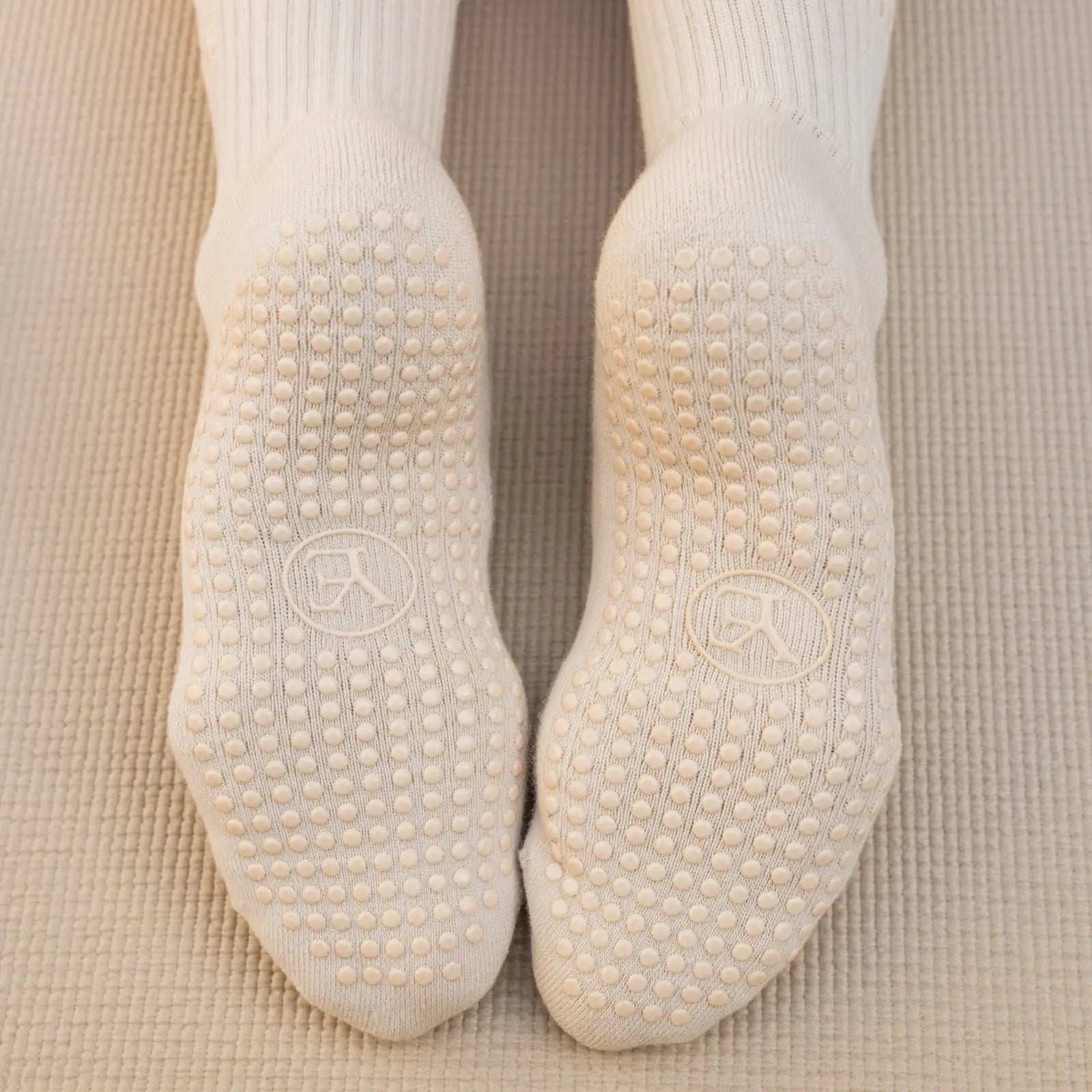 De gripdots geven stabiliteit op reformer, mat en vloer. Een essentiële basic die bewijst dat minder soms meer is.